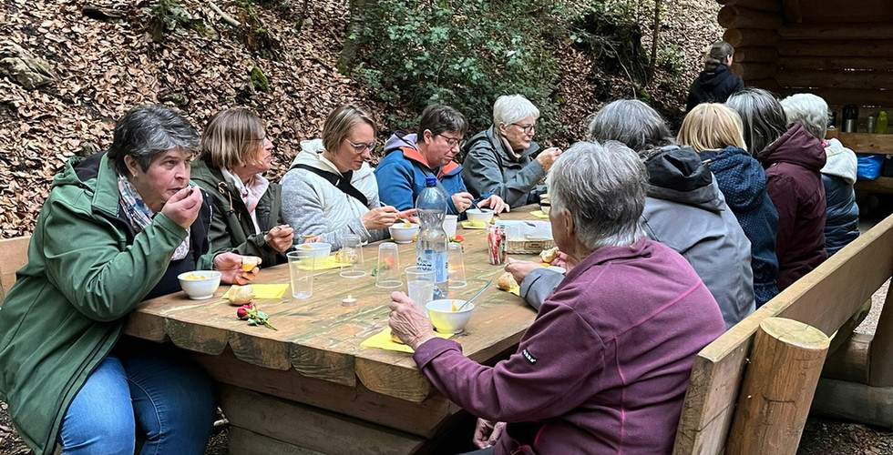 Im Anschluss an die berührende Andacht wurde bei der wunderbaren Grillstelle im Flüeli allen Teilnehmerinnen eine feine Gemüsesuppe vom offenen Feuer offeriert und alle freuten sich an diesem stimmungsvollen Abend.